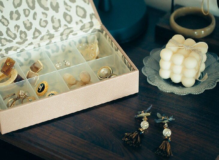 「アクセをハンドメイドするのが好き♪おばあちゃんの形見のシャネルのボタン風ピアスはお気に入りで、スリコのケースに大切にしまってます」。