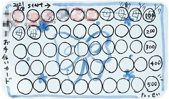 お手伝いでスタンプがたまれば、小遣いがもらえるからやる気UP!