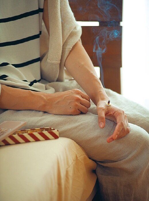 疲れを感じた日は、夫婦でお灸タイム。「血流がよくなってぐっすり眠れるように。腰痛や冷え症も緩和された気がします。夫の健康状態を確認する時間にもなっています」。