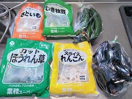 野菜は農家の直売所で購入。取れたての野菜は安くておいしい! 野菜が高騰しているときは業務スーパー®の冷凍野菜を活用。乾物や大豆製品をプラスすれば栄養バランスは◎。(Nagomyさん)