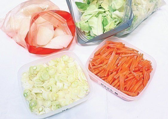 食費マイナス5万に成功した海老原さんは、常備野菜も使う形にカットして冷凍しています。