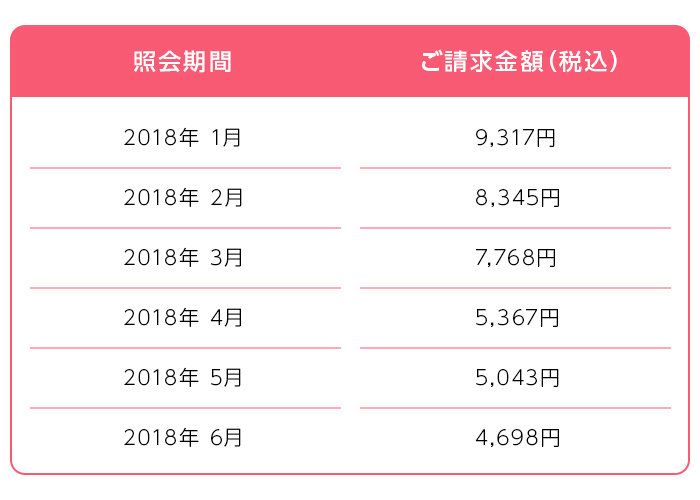 で、だいたい4000~5000円でまかなえています。最初の請求額が多いのは、夫の会社関係の通話が多くてかさんでしまったため。部署が替わってから急に安くなったのがおわかりになるかと思います。