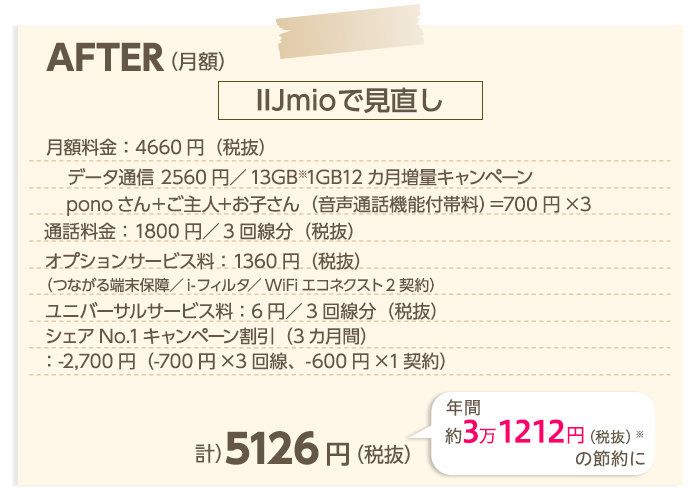 <AFTER>「ファミリーシェアプラン」なら今より年間3万円もお得に!