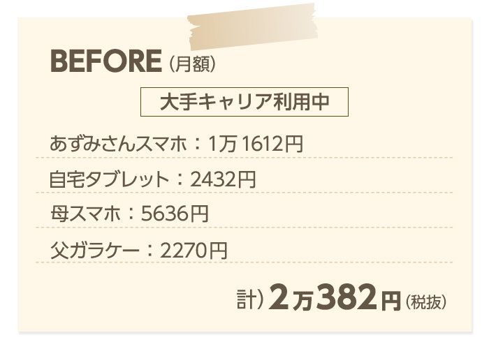 <BEFORE>家族3人分のスマホとネットで毎月約2万2000円の出費