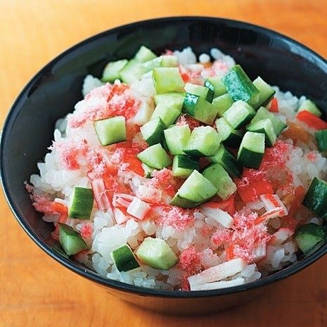 便利なちらしずしの素は常備。かに風味かまぼこや桜でんぶ、きゅうりなどをトッピング。