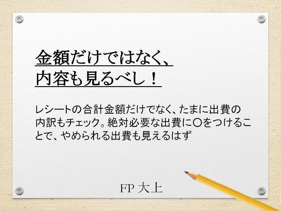 大上:そうそう、その調子!その予算で払うべきものを決めることで、予算をいくらにすればいいか目安もつけられるし、やりくりも迷わなくなります。ムダもどんどん見えてくるはずです。