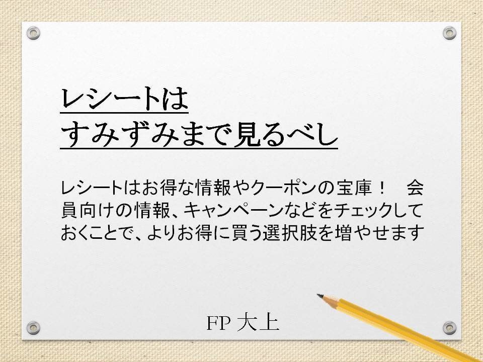 大上:ポイントをもらうために買うのは、これでやめられますね!ちなみに、レシートの上部に注目してみてください。1日、10日、20日は5%オフとありますよ!オムツを買うだけならこの日に行けば、1800円の出費で90円もお得。2000円払って30ポイントもらうより、断然お得だし、出費も少なくてすみます。