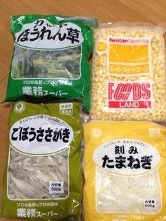 5人家族で食費月4万円のどんmyママさん。業務スーパーでは、刻み玉ねぎ・ごぼう・ほうれん草・コーンなどの冷凍野菜を購入。大容量で下処理済みなのに、すべて100円台以下!料理やお弁当づくりに大活躍だそうです。コロッケ・カツ・春巻きなど揚げるだけの冷凍おかずや、ウインナーなどの加工肉も、子育て家庭にうれしい商品ですね。