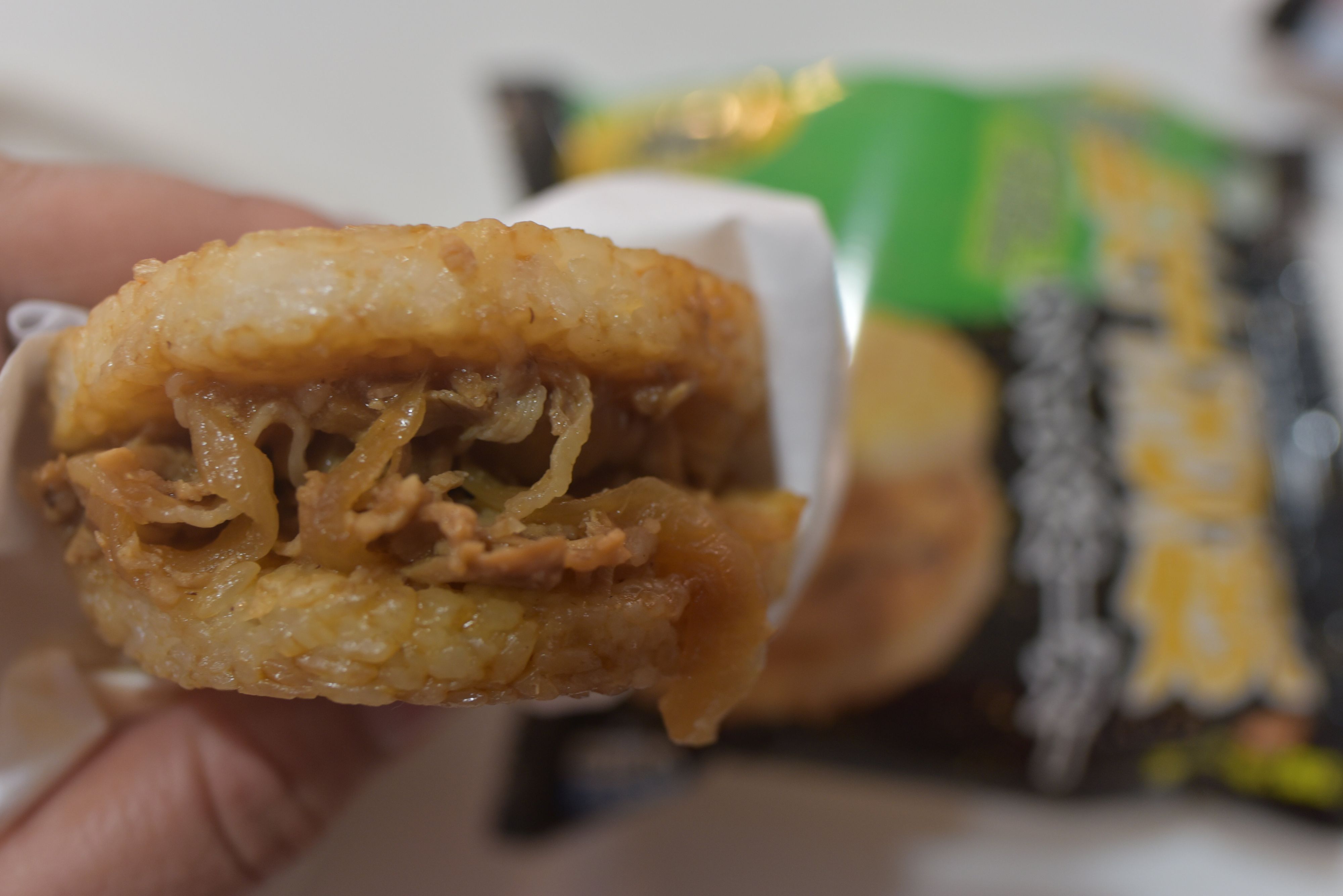 業務スーパーの冷凍コーナーで販売されている国産米100%使用したライスバーガーの「焼肉ライスバーガー」と「豚生姜焼バーガー」。価格はどちらも132円で、コンビニのおにぎりほどのお値段で、購入できます。