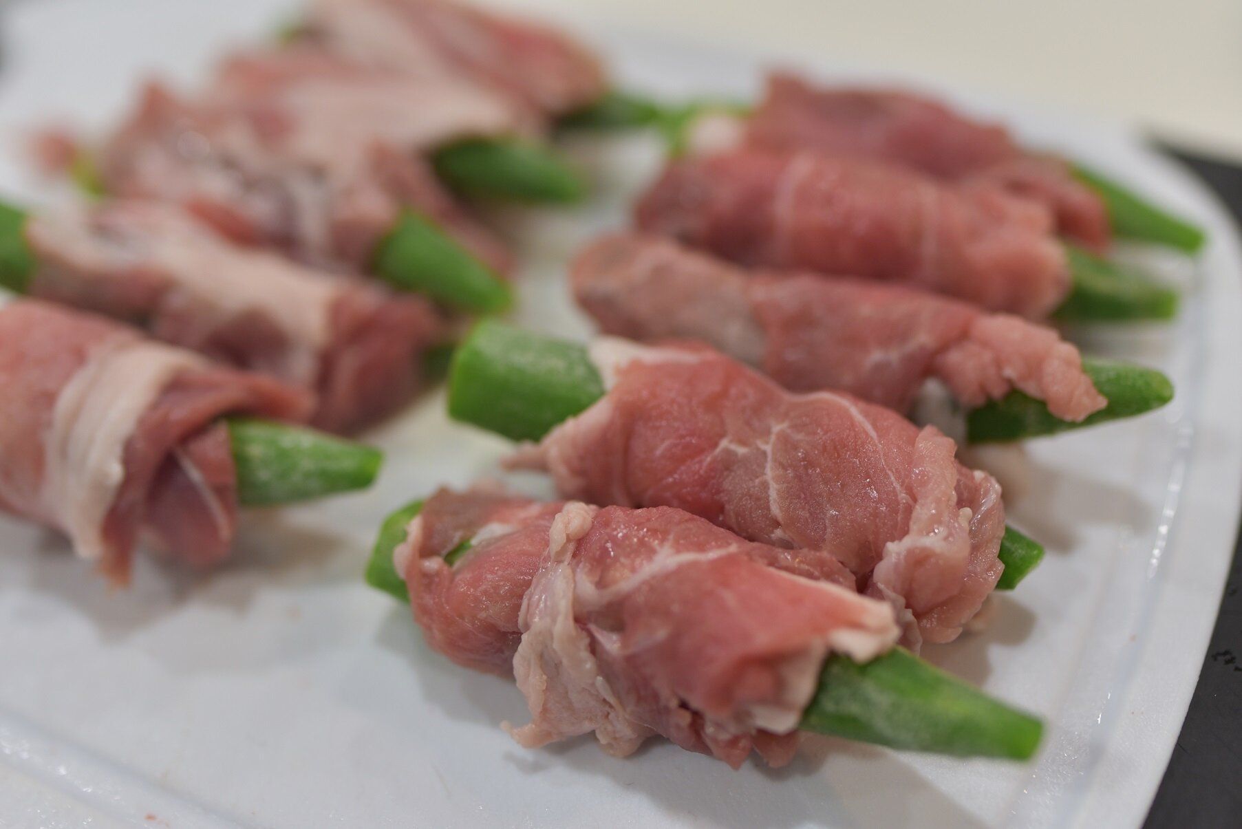 お弁当に入れるときは、玉子焼きを焼いた後のフライパンを使って焼くと効率的。