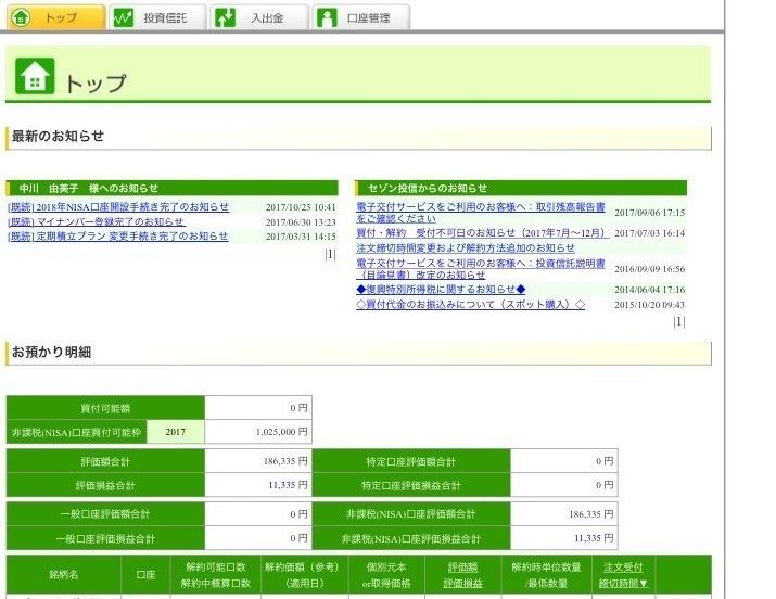 嘱託社員として働いているyuncoさん。自分の給料から月1万円ずつ、ボーナス時に5万円を投資信託に積み立てしています。「投資初心者だったので、いろんな投資商品がセットになっているバランス型の投資信託を選びました。17年2月から始めたばかりでまだそれほど利益は出ていませんが、長い目で続けていくつもり。18年1月以降は『つみたてNISA』でまた月々積み立てをしていく予定です」