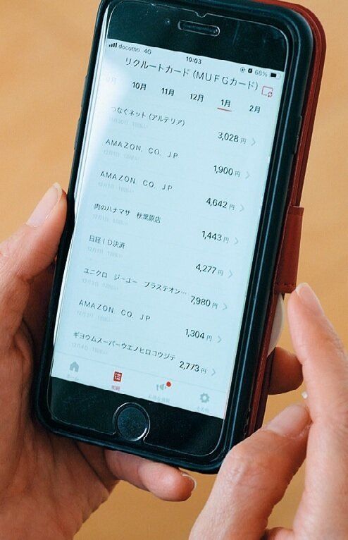 カード会社のマイページにログインして使用明細を確認。「カード払い分の月予算を決めているので、予算内に収めるように使い方をセーブ」。