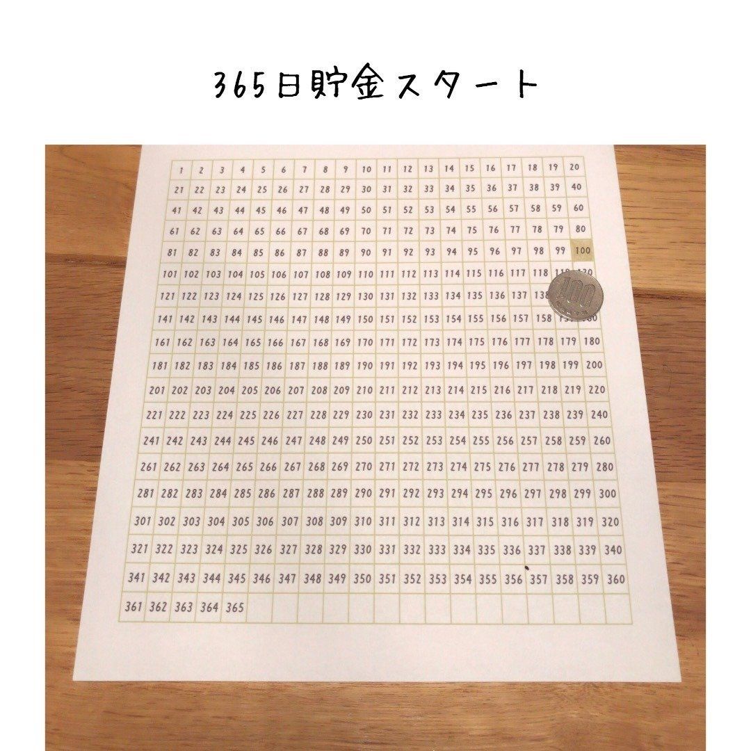 nikomamaさんは、1日1〜365円好きな金額を貯金して数字の書かれたシートを塗りつぶしていく365日貯金をしています。1年後には66,795円貯金することができるようです。シートはネットで無料ダウンロードできるサイトがあるみたいですよ!