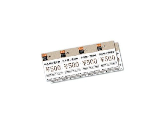 2000円、3000円、5000円の3種類の優待カードがあり、1000株以上で優待が3万4000円/年にも。クーポン券など他の割引券とも併用可。