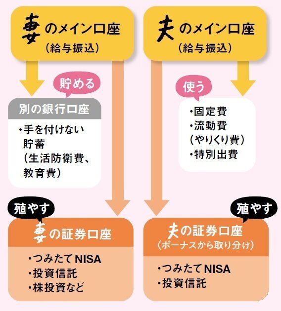 超シンプル!E家のお金の流れ~生活費は夫の収入でやりくりし、妻の収入と余裕金を投資へ