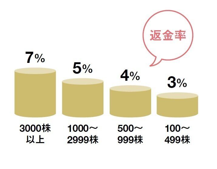 持ち株数に応じて、買い物の合計金額に対する返金率が決まっており、半年に1回キャッシュバックされます。
