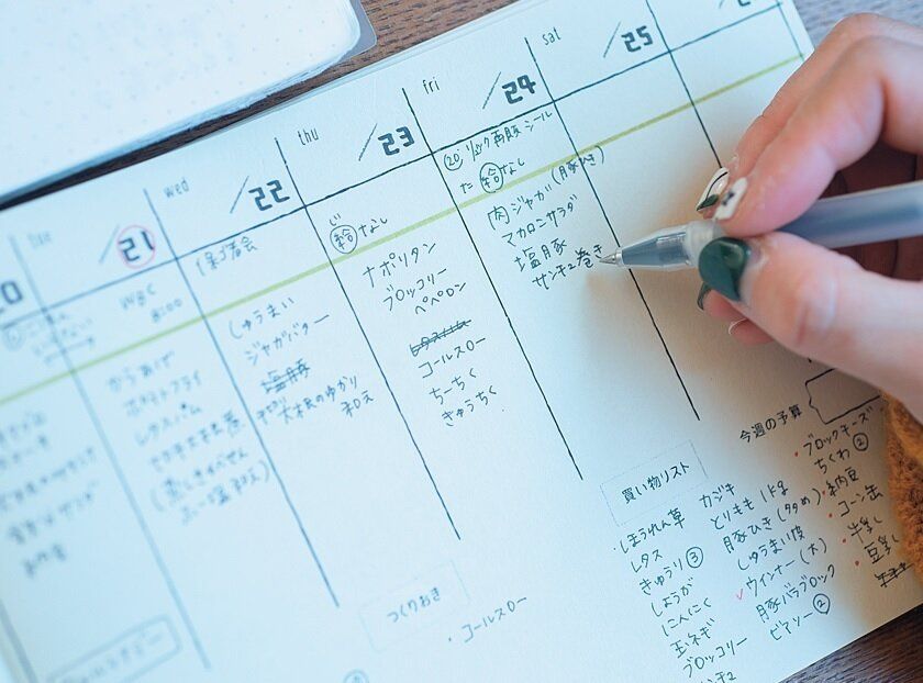 時短のためにまとめ買いを始めてから、食材を無駄なく買うために、1週間分の献立を事前に決めています。私が紙に書いていた献立表をもとに『サンキュ!』で作成した献立ノートは大好評でした~。