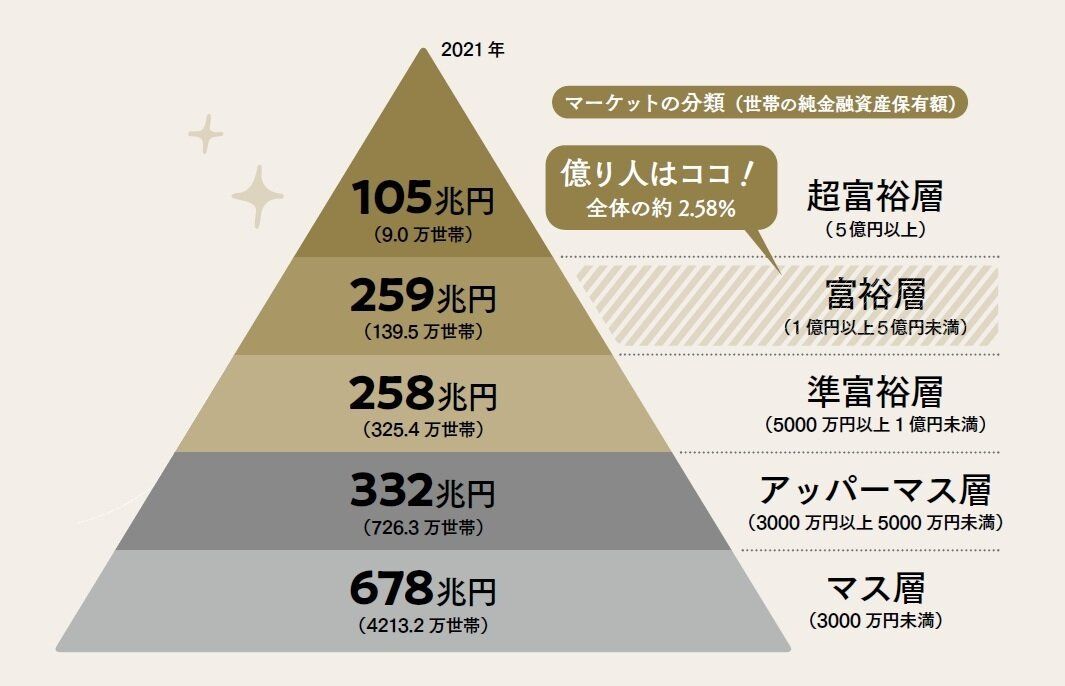 「富裕層・超富裕層」の世帯数は、2005年以降、最多に!理由はズバリ、株価が上がって保有資産額が殖えたから。例えば「準富裕層」だった人が、株価上昇により「富裕層」(=億り人)へと昇格するケースもあるなど、日本には“お金持ち”が増加している。