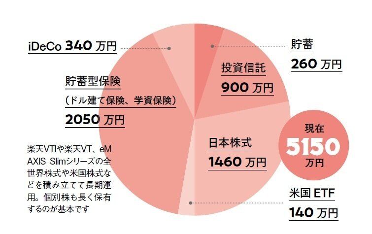一番上の長男もまだ小5でお金がかからないため、月収から毎月40万円を投資に充てて貯蓄は生活防衛費のみ。長男が中学生になったら個別株を売って現金化し、進学に備えるつもり。