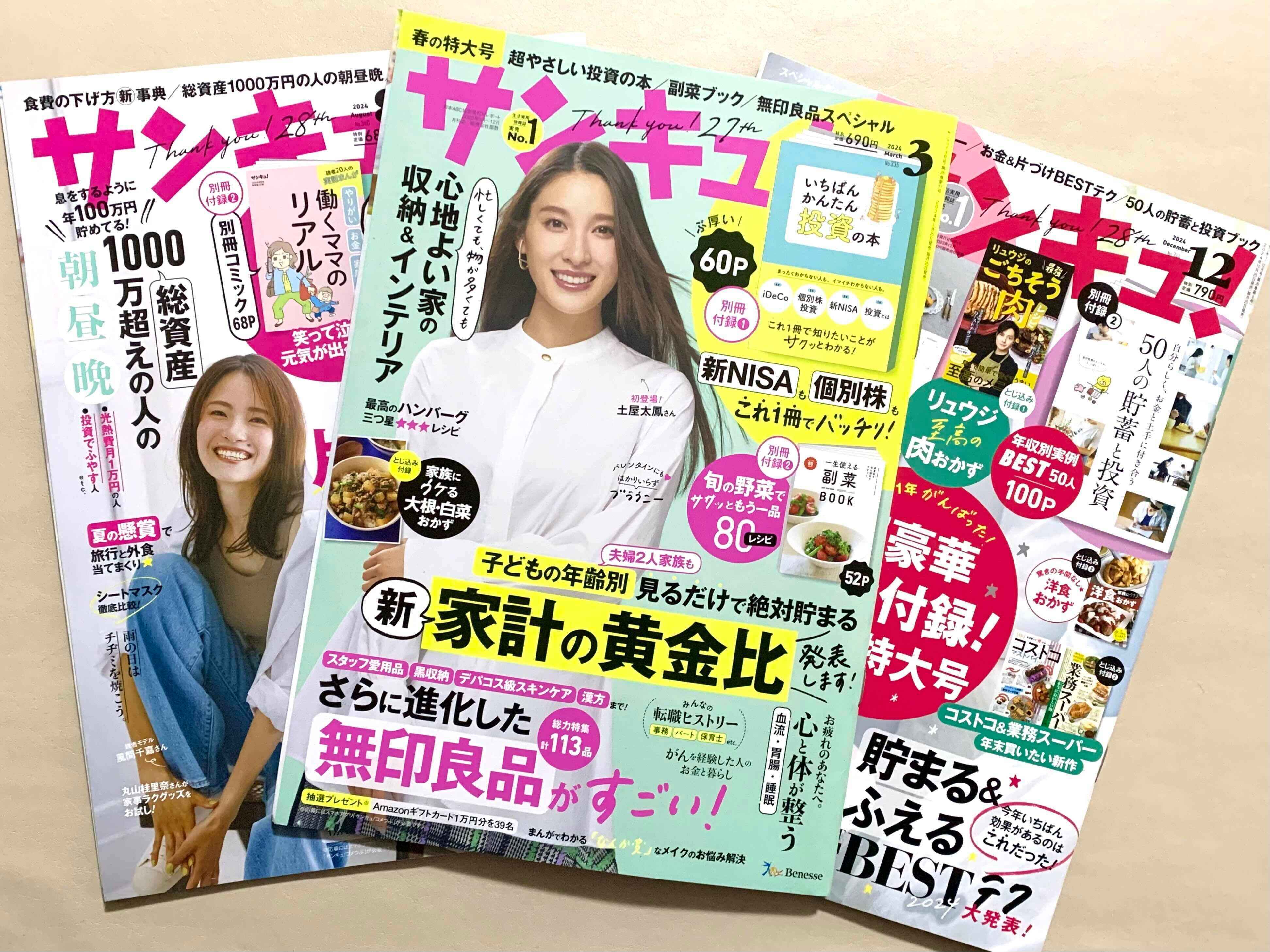 最近では、我らが「サンキュ!」でも頻繁に投資についての特集が組まれています。専門家がていねいに解説する入門者向けの基礎的な内容から、投資達人の戦略やお金遣いまで、バラエティ豊かな情報が得られますよ。