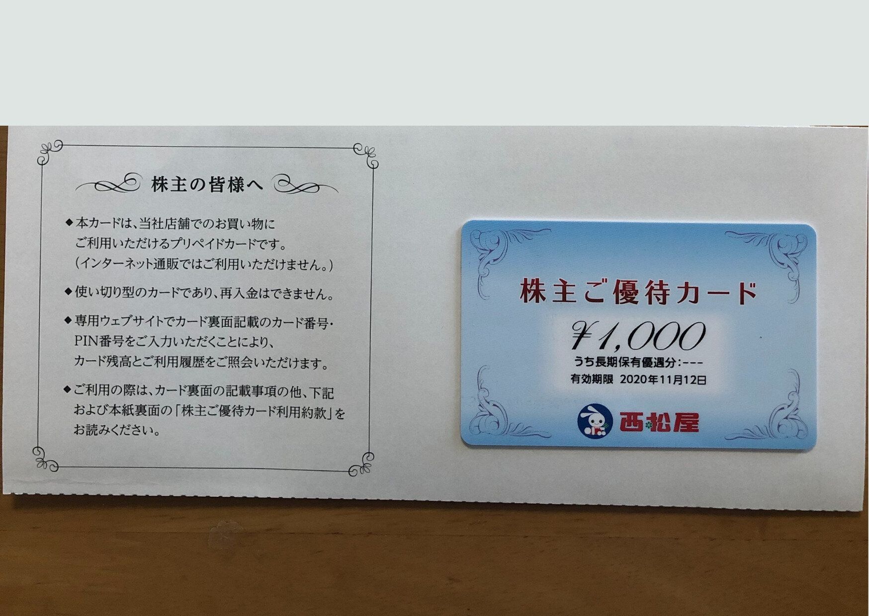 ・株主優待内容:お買い物カード