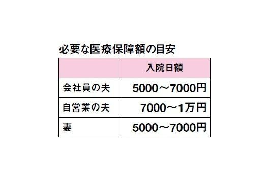 入院保障+手術給付金のシンプルなプランに、低コストで追加できる先進医療保障をつけてもOK。夫が自営業の場合は傷病手当金が出ないので、入院日額を多めに設定しましょう。