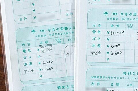家計を立て直すため2年間だけ細かくつけた家計簿から、水道・光熱費の年間平均を算出。「冬の灯油代も含め月1万9000円の予算に。季節の変動に合わせて予算を変えなくていいので、ラクです」。