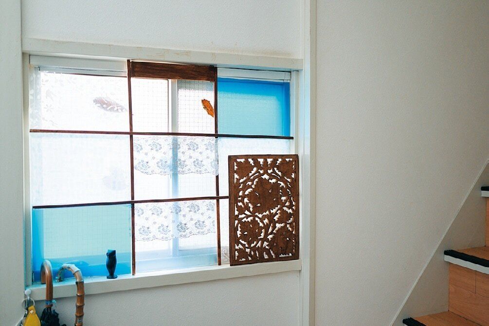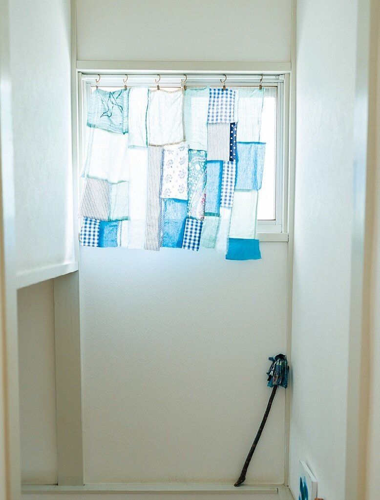 ブルーや少し甘いテイストが好きな紫苑さん。100円ショップの端切れやリメイク服の余り布でカーテンやはたきを手作り。インテリアのアクセントに。