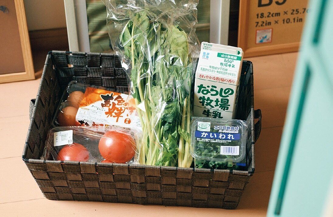 週1~2回、冷蔵庫を見て足りない物を購入。「この日は冷凍肉があったので野菜や卵などを買い足し。3~4日で食べ切る量を意識して予算を守ります」。