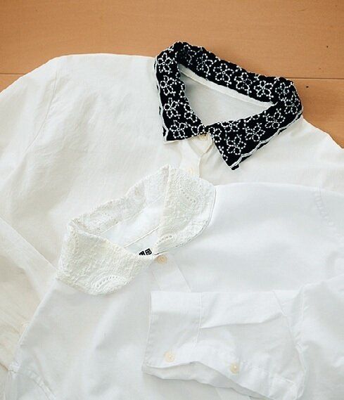 「着物は襟元が大事。白い半襟のおかげですてきに見えます。洋服も同じかな、と考えてひと工夫。白シャツは襟を付け替えて刺し子刺しゅうをしたら愛着もぐっと増しました」。