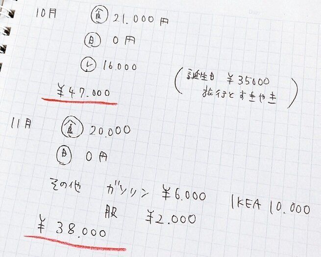 生活費はほぼカード払い。「マネーフォワード」アプリに入力し、月1回、ノートに固定費以外の合計額をメモ。「書くことでお金を使ったことが意識でき、ムダ使い予防に」。