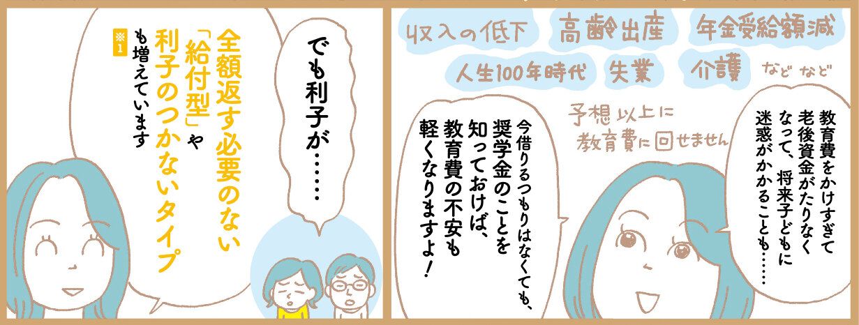 記事では、「子どもに負担が大きいのでは?」「金額は何を基準に決めるとよいか」など、親が知りたい奨学金の疑問や悩みに具体的に回答。「奨学金の説明会は高3春と早いから注意!!結果的に借りなくてもいいから申し込むのがいい」など、上手に利用するためのコツもわかります。