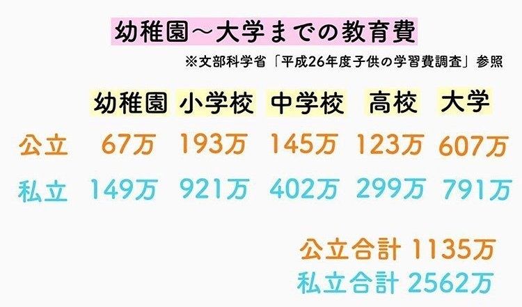 大学生まででどれくらい費用が必要になるのか、まずは「学費」だけを見てみましょう。