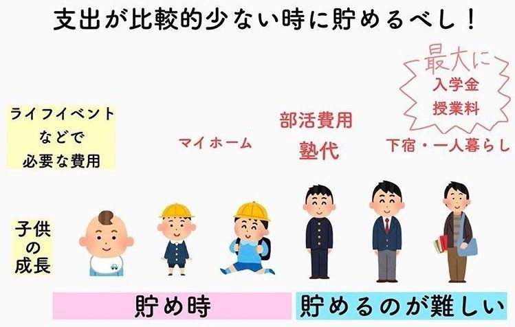 そのため、一般的な家庭の貯めどきは支出が少なめな子どもが小さいとき。