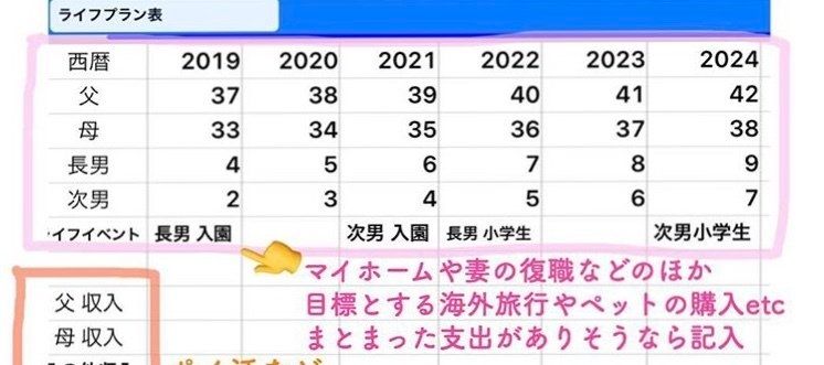 家族構成やライフイベントは家庭によって違うので、ライフプラン表をつくりましょう。