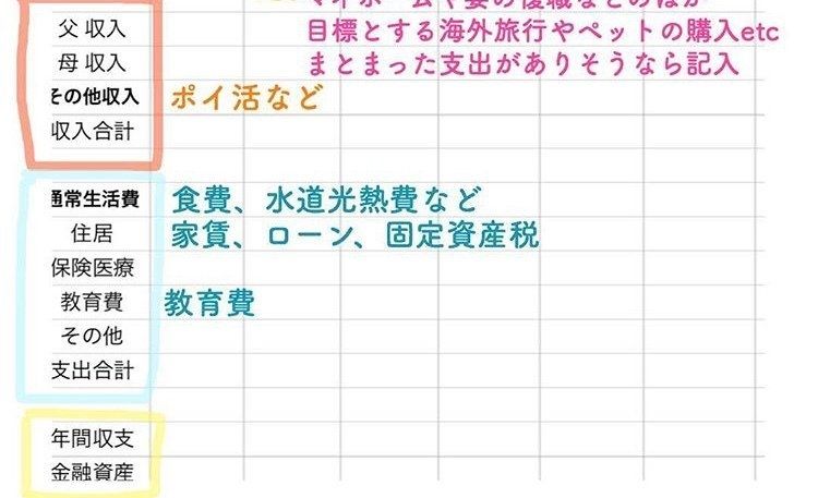細かく記入することが難しくても大丈夫!今後、家庭でいつ、どれだけお金が必要になるのかをおおまかに理解するのが目的です。