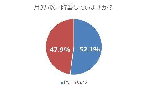 児童手当を除き、月3万円以上貯蓄しているか?聞いたところ、52.1%の人が「はい」と回答しました。