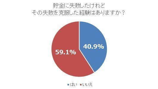 「過去にがんばってお金を貯めようとして失敗したことがある」人に、「その失敗を克服できたか?」聞いたところ、40.9%の人が「はい」と答えました。