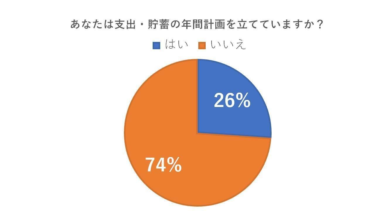 サンキュ!モニターアンケートによると、家計の支出・貯蓄の年間計画を立てている人は、全体の26.1%でした。