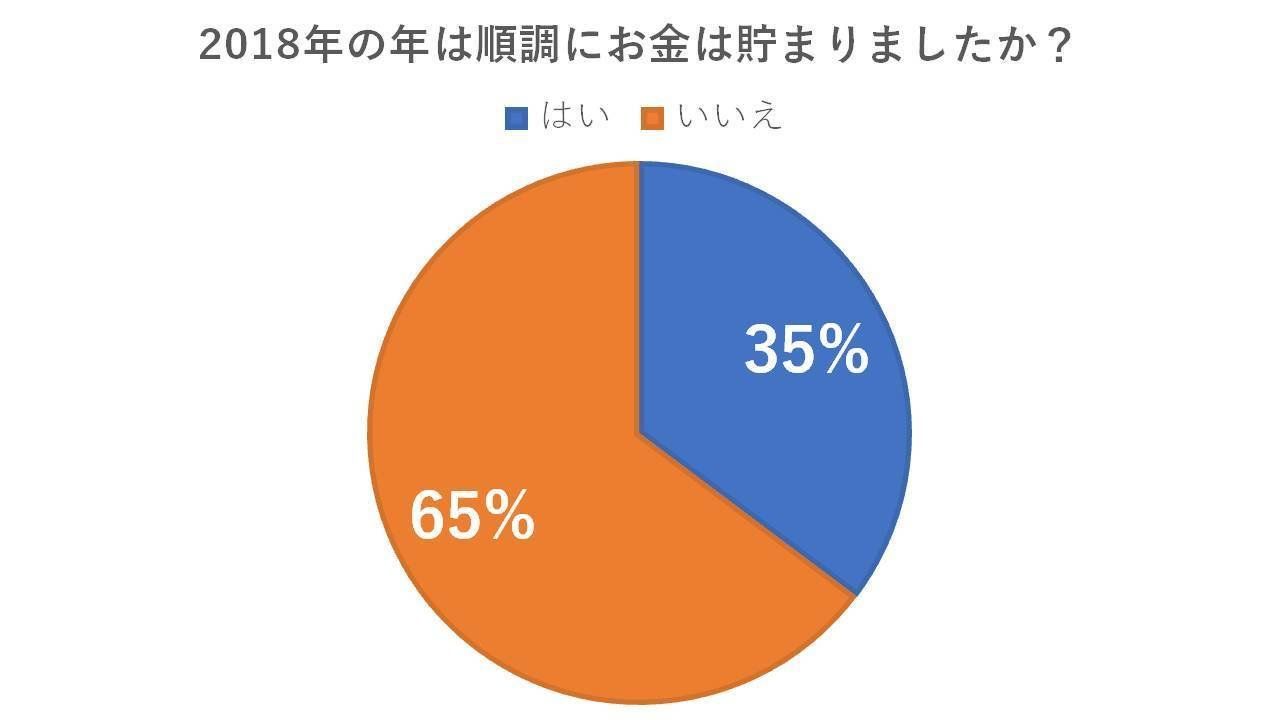 2018年、順調にお金が貯まったか?というアンケートの回答で「はい」と答えたのは、全体の35%と全体の半数以下でした。