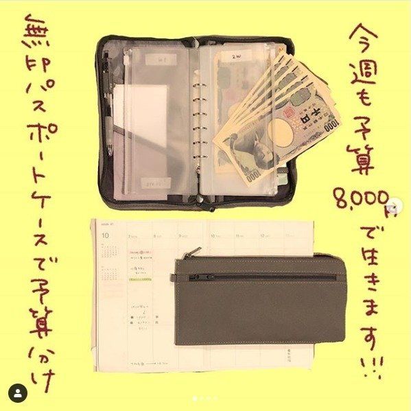 貯金下手さんでも実践しやすいのが、1週間の予算を決めて封筒などに分けておく方法です。無印のパスポートケースを使えば、1週間分だけでなく、その月の予算も管理しやすく実践している人も続出です。