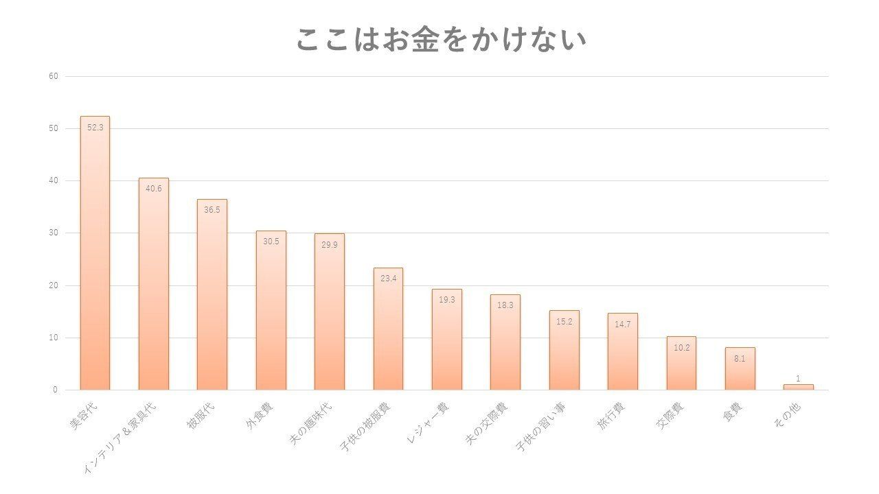 逆に「お金をかけたくないもの」については、美容や家具&インテリア、ファッションなどへの出費を、なるべく抑えたいと考えているようです。