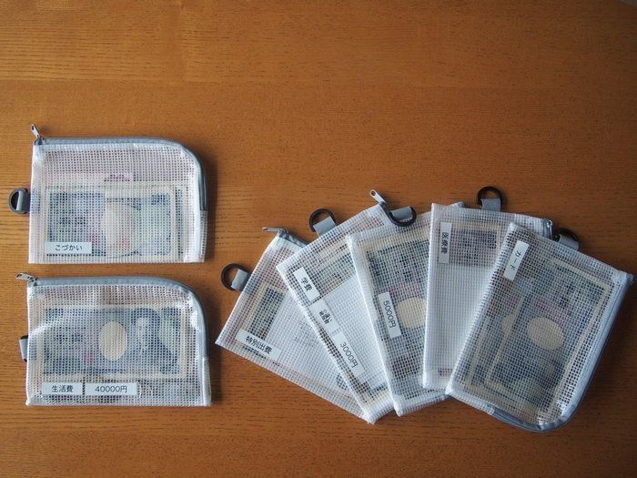 年100万貯蓄を目標にしているサンキュ!ブロガーlaureaさんダイソーのファスナーケースに分類シールを貼り、管理しています。