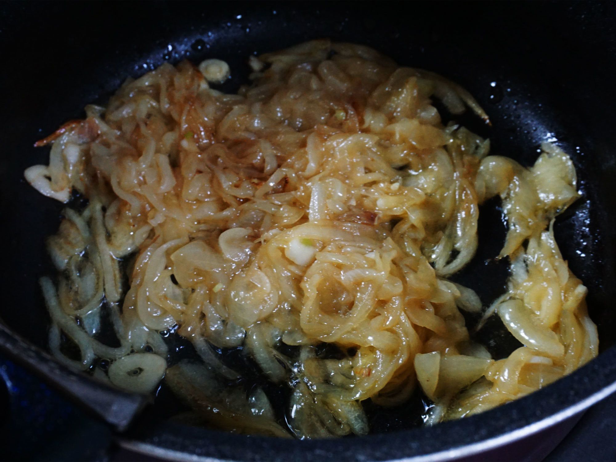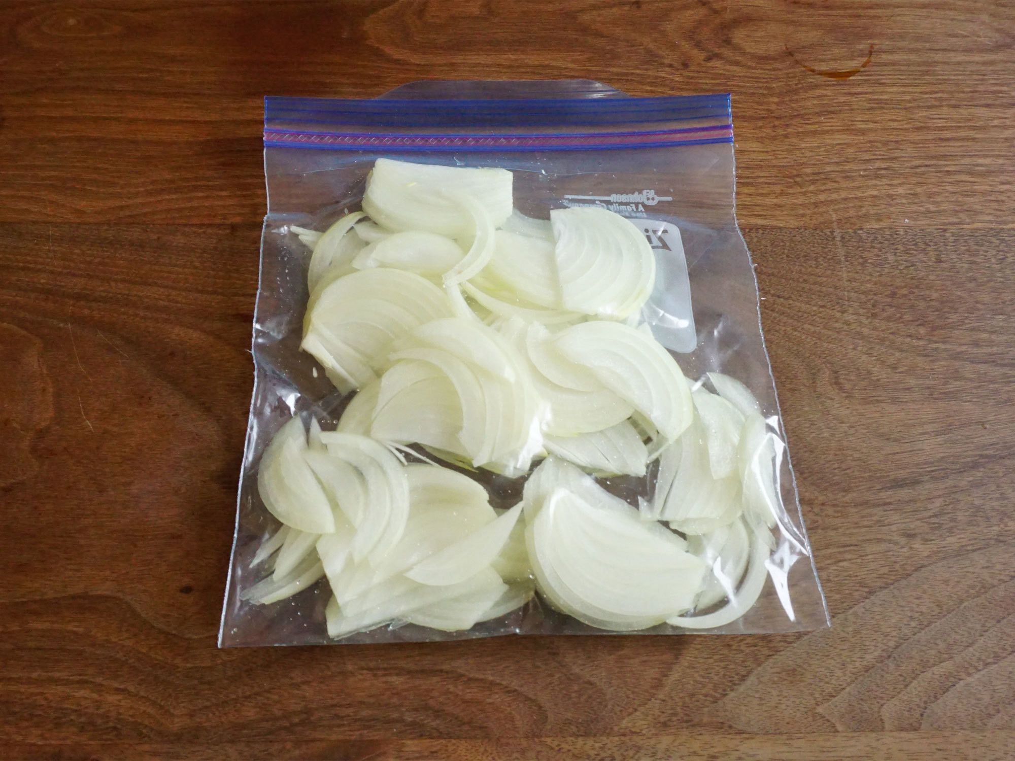 冷凍した玉ねぎを炒めると、短時間であめ色の玉ねぎ炒めを作ることができます。