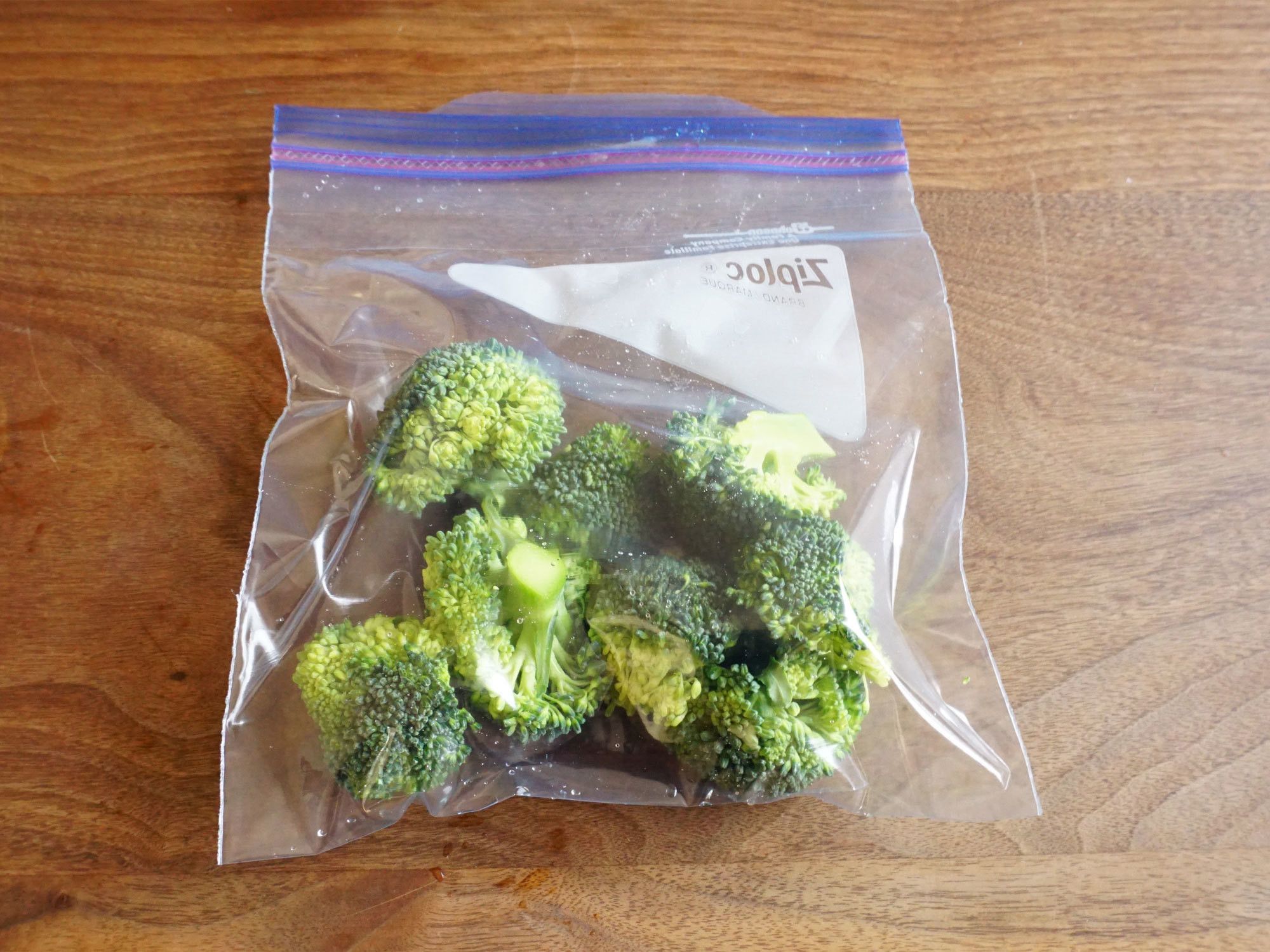 野菜は一度洗ったあとで冷凍しますが、そのときについた水けはペーパータオルなどでしっかりと拭いてから、フリージングバッグで保存します。水けがついたままだと霜が多くつき、料理が水っぽくなってしまうことがあります。