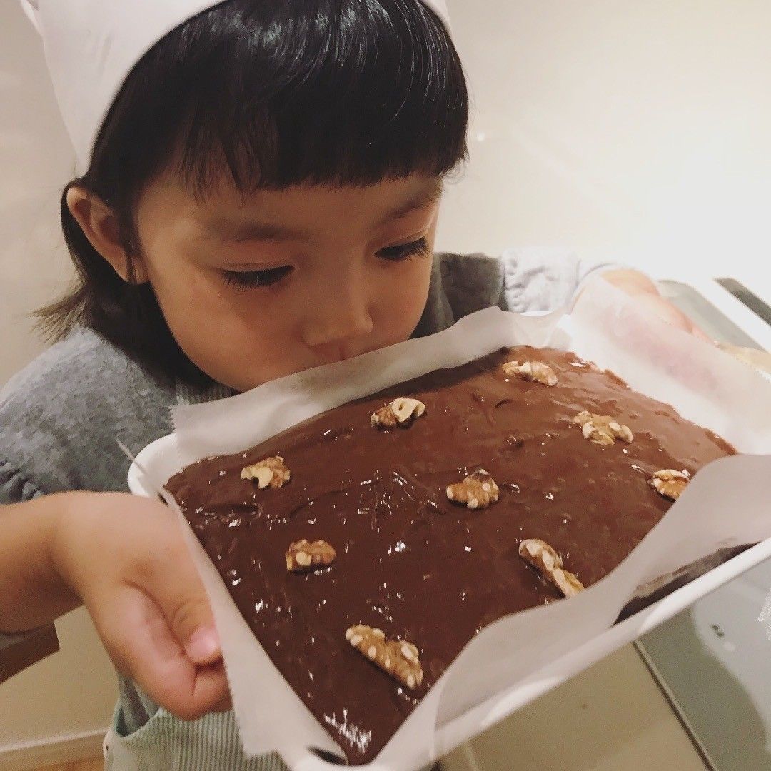 もとパティシエの せんちゃん さんは、7才の娘さんとブラウニー作りに挑戦。