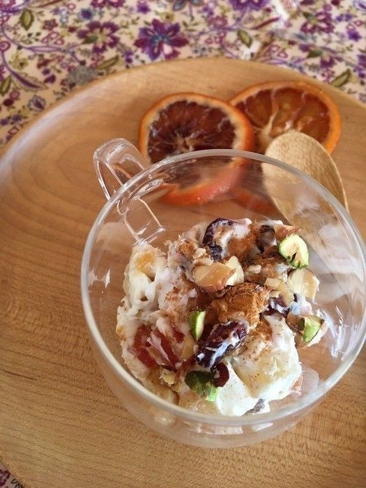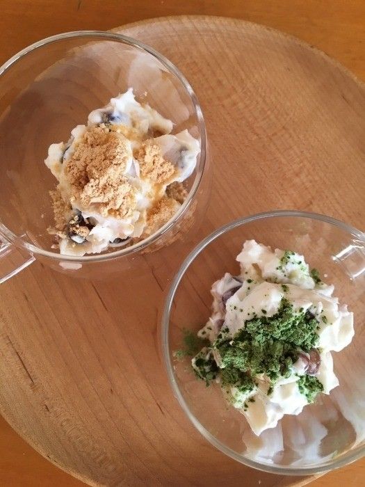 お好みで上から抹茶パウダーやきな粉をぱらりとすると上品な和スイーツが完成! お正月のアレンジにもちょうどよさそうですね。また、甘納豆は大きめのものは半分に切るのがおすすめですが、そのままでも、全然OK。ごろっと入ってる感じも悪くないようですよ。