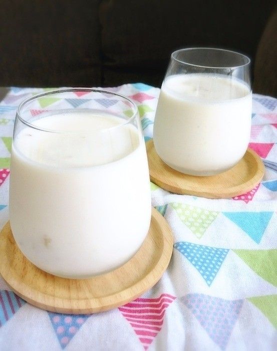 バナナゴロゴロの「食べるドリンク」の出来上がり。ビヒダスヨーグルトはすっぱくないから、子どもも飲みやすいドリンクに。
