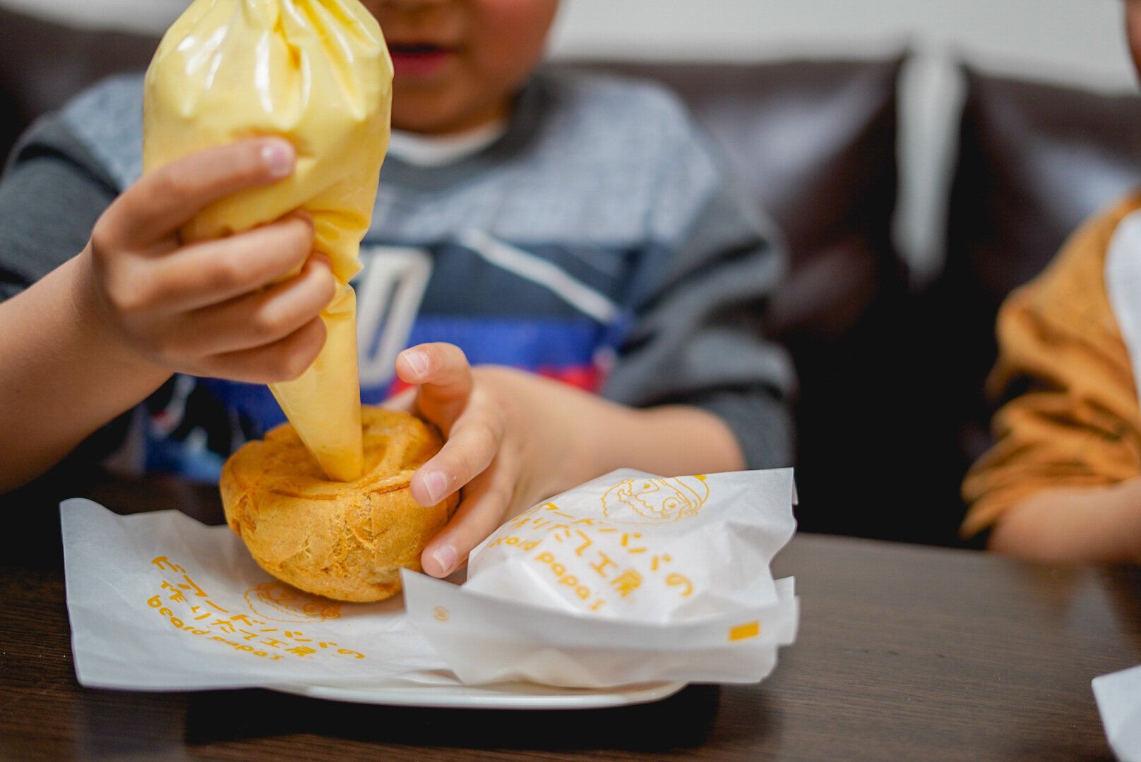 元々シュー生地に開けられている穴の部分に絞り袋でカスタードクリームを注入するだけの簡単な作業ですが、お菓子作りをめったにしない我が子はテンションぶち上げでした。普段よく購入しているあのシュークリームをお家で作れるという特別感もありますよね〜