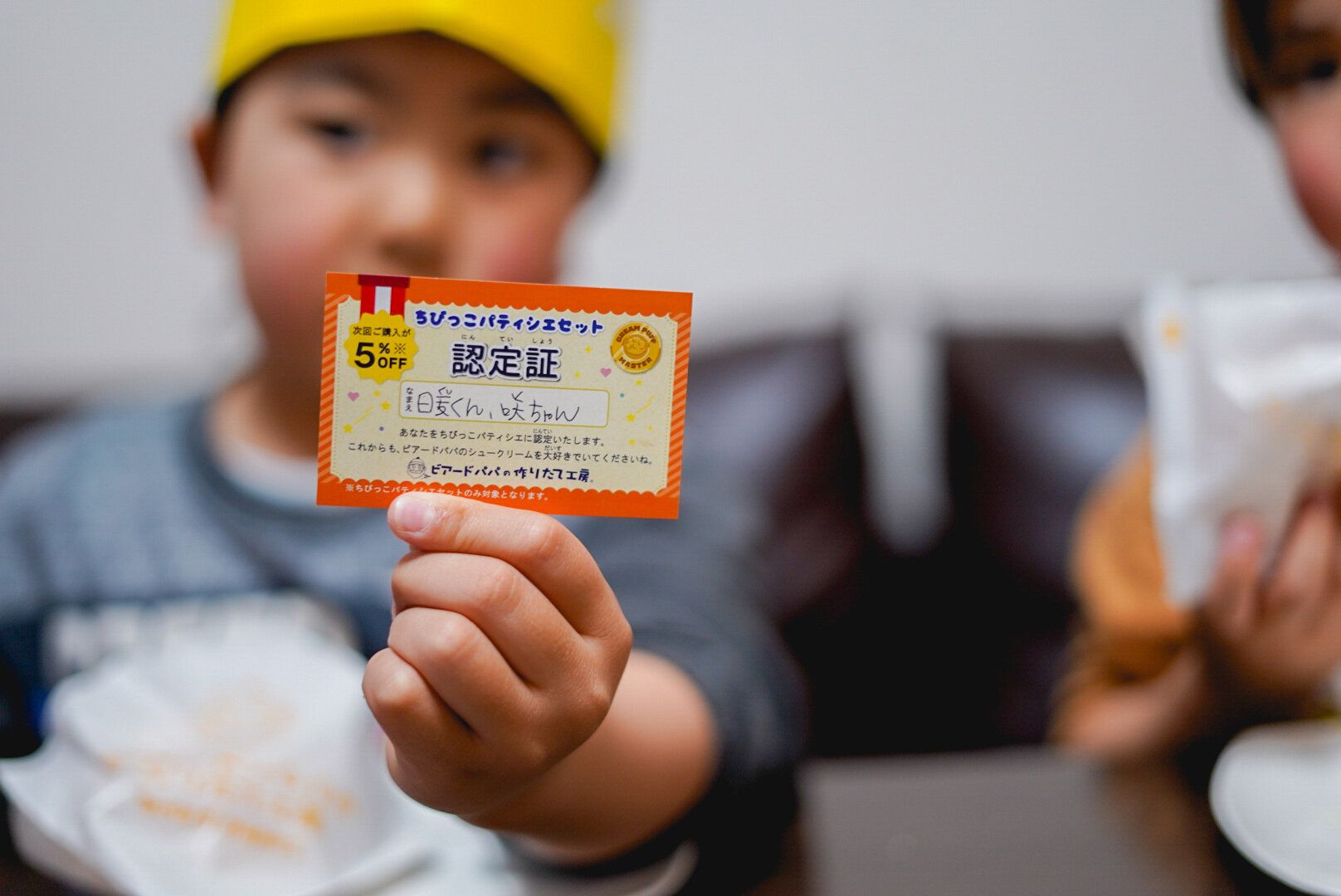 セットについている認定証は次回購入5%オフのチケットになります♪ちびっこパティシエセットのみ対象となりますが、今回うちの子は大喜びだったのでまた買いたい我が家は大助かりです◎